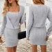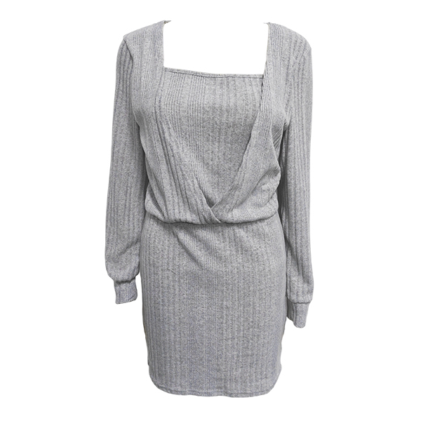 This Mock-Two-Piece Ribbed Bodycon Dress is a trendy and stylish dress that offers a modern twist on a classic silhouette. The square neck design provides a unique and flattering neckline that adds a touch of sophistication to the dress. The front slit detail adds a daring and edgy element to the dress, creating a bold and fashion-forward look. The mock-two-piece design gives the illusion of a layered outfit, adding depth and interest to the dress. The ribbed texture adds a tactile and dynamic quality to the fabric, creating a figure-flattering bodycon fit. Style it with boots and a leather jacket for a more edgy and casual ensemble.