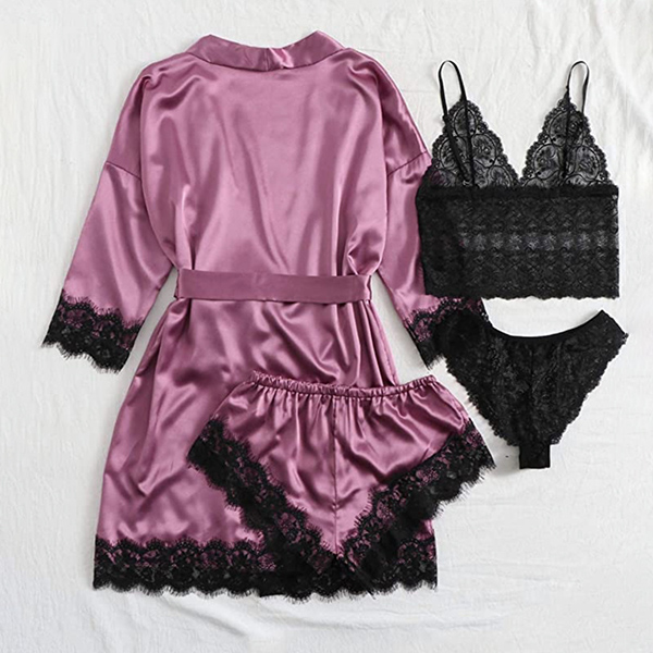 Pajamas 4 Piece Suspender Pajamas Summer Suit with Nightgown Nightdress