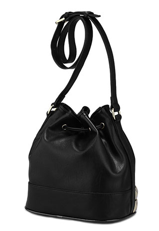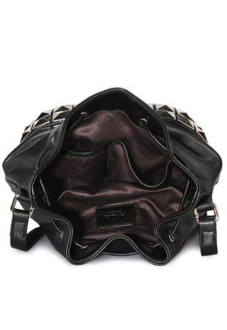 The bucket bag features faux leather accents,a drawstring closure,metallic panels and rivets at the bottom to add some luxury vibe to it.It will gear your necessities and keep your look fashion.