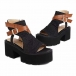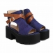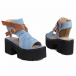 Peep-Toe Denim Ankle Strap Sandal Bootie