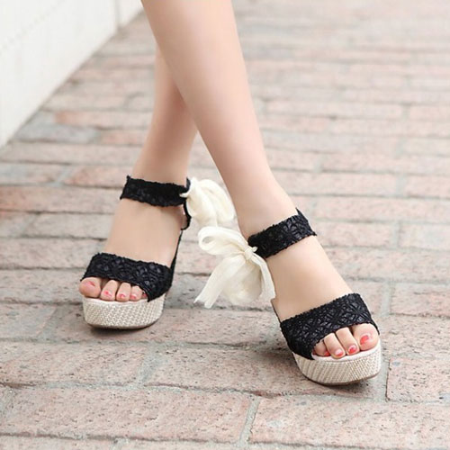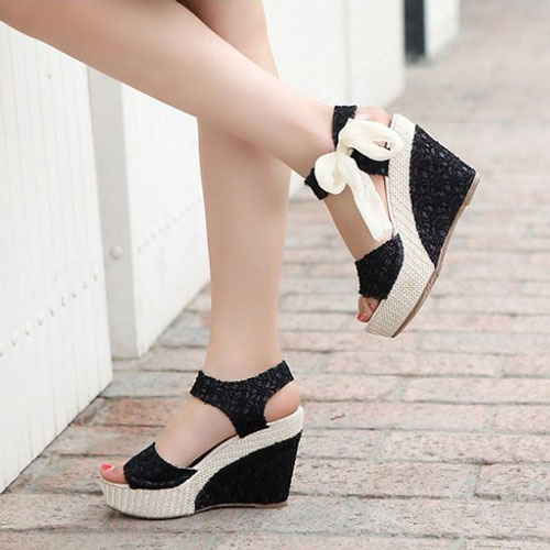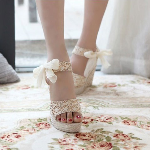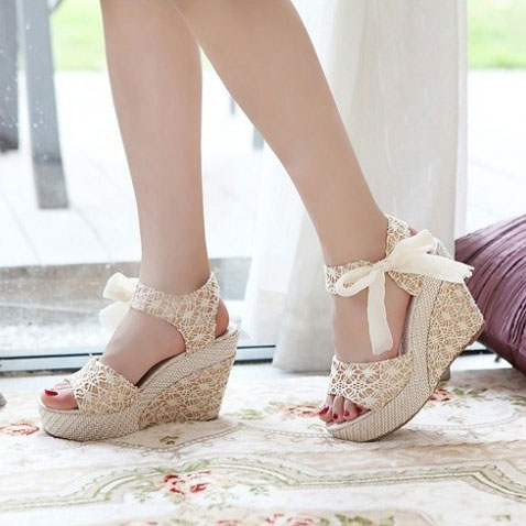 This beautiful peep-toe sandal are perfect for wandering in the beach.It features open back and toe,lace up closure,4.13" wedge heel and 1.18" platform.Pair them with chiffon dresses and sun hats to complete a cool beach look.