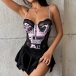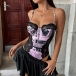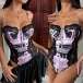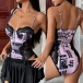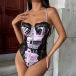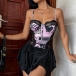 Pictorial Print Bodysuit with Underwire, Lace Detail and Gathered Waist