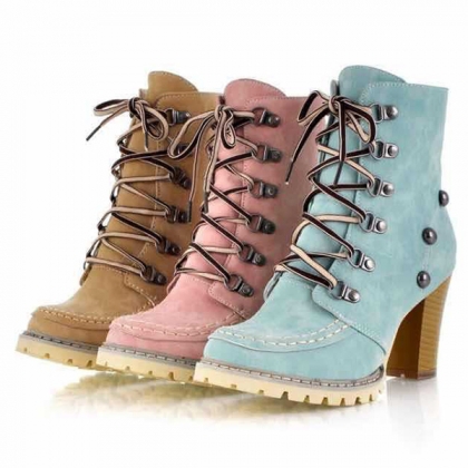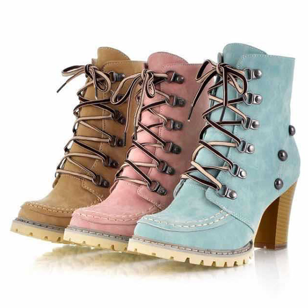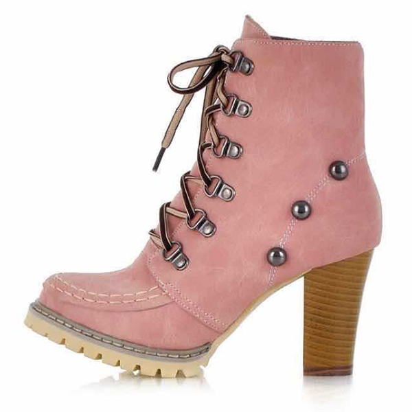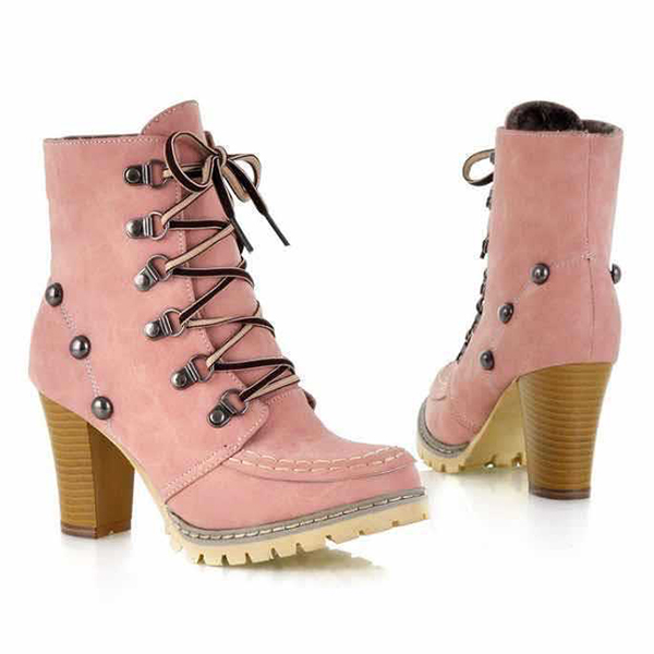 Pink Combat Boots with Studded Buckles