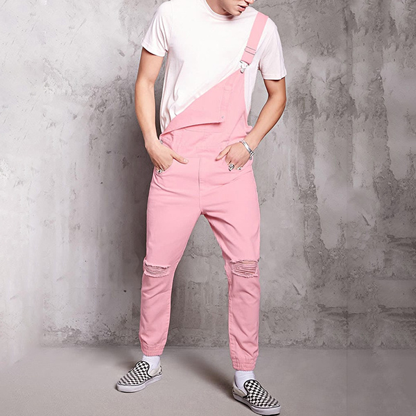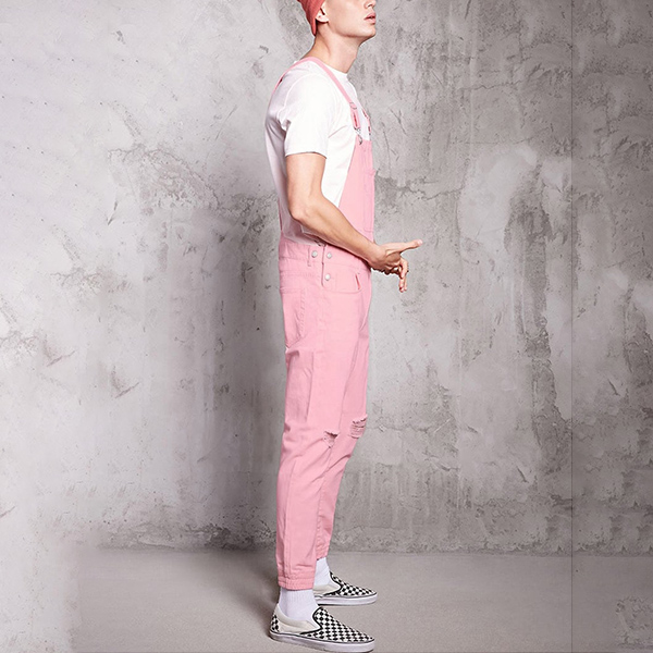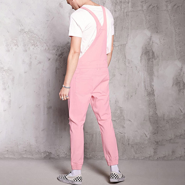 Pink Distressed Denim Jean Shorts Overalls Ripped and Frayed One Piece Jumpsuit