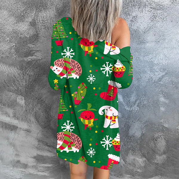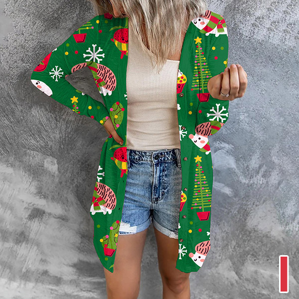 Playful Style Christmas Printed Long Sleeve Cardigan