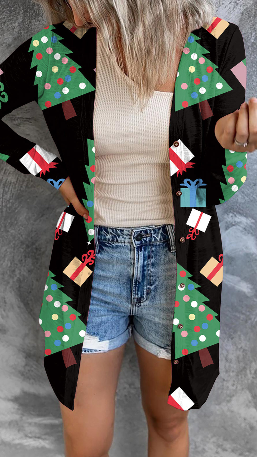 For a chic and playful Christmas look,you can just have a try this cardigan. The Christmas printed pattern design makes it more matching with the occasion,which can add some festival atmosphere. Different colors for your optional. It can be the perfect Christmas gift for your friends and yourself.