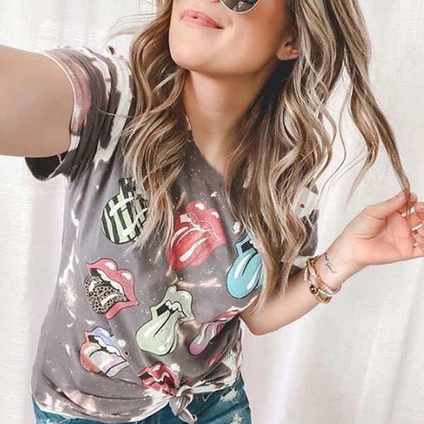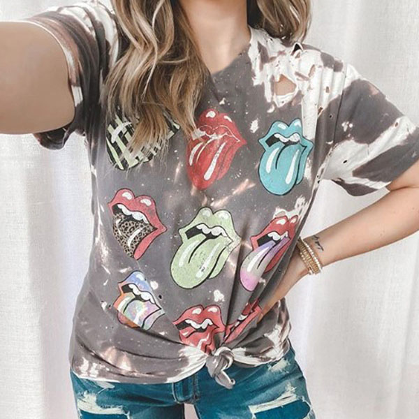 Combines of stylish and playful vibes,this t-shirt is just the thing you need on your casual days. The tongue printed pattern design makes this piece look so chic and lively. Crafted from soft and breathable fabric,with short sleeve and round neck design,this piece not only can keep the comfy,but also can offer you different matching styles.