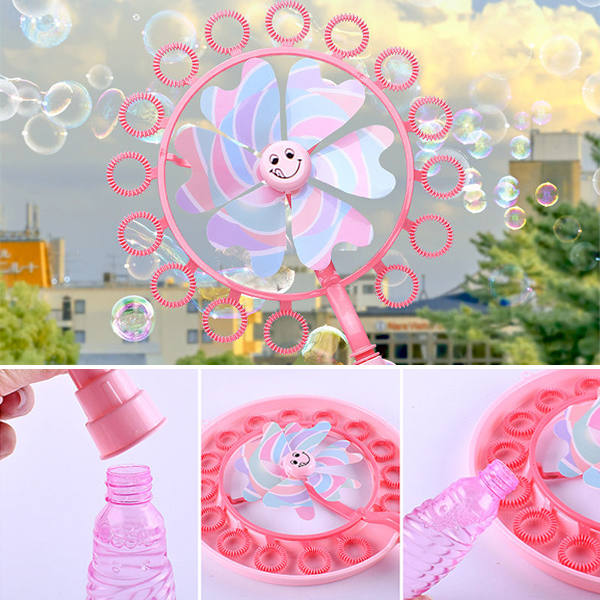 Looking for outdoor toys for children to complement the beautiful weather? A fun outdoor activity for kids to make that time out in the yard or camping a memorable affair? This bubble maker combines healthy activity with hours of fun. No batteries needed. Prepare bubble solution in the bubble tray, then stir the water with the pinwheel bubble sticks, finally you can make miraculous bubbles quickly !