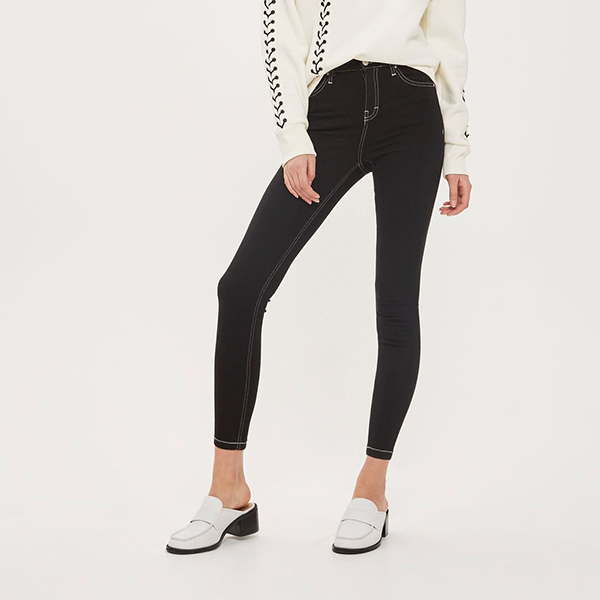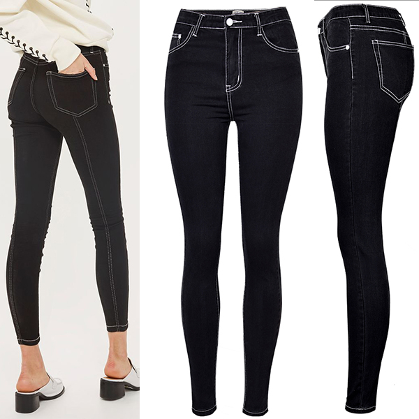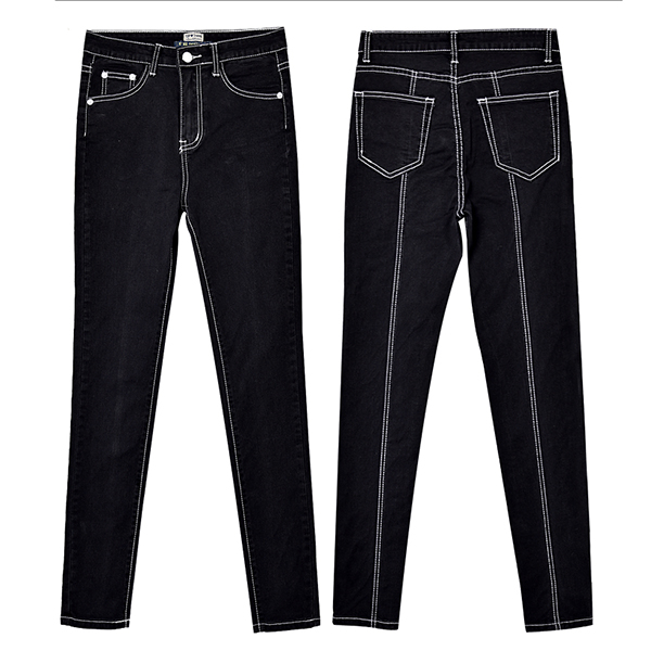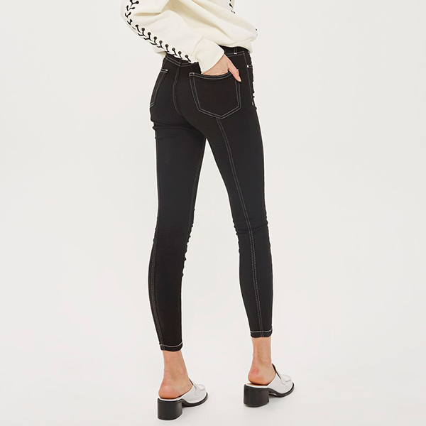 Pleated Back Jeans with High-Waisted Slim-Fit Design