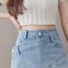Plus Size Denim Hakama Skirt Slim Summer Style Prevents Show Through with Irregular Hem