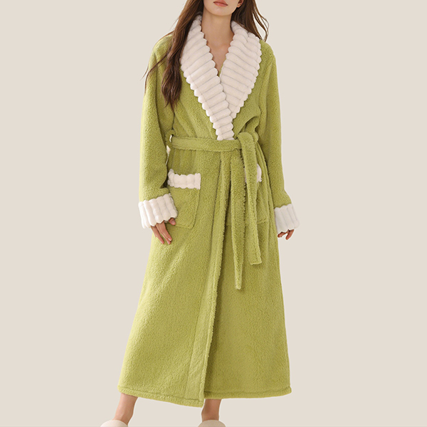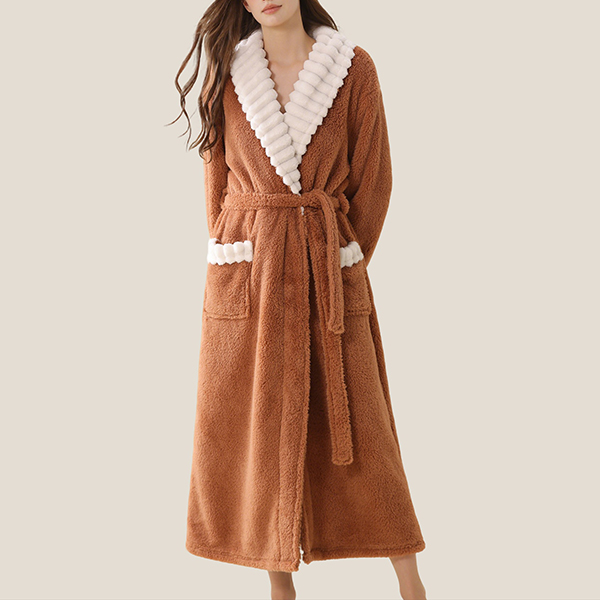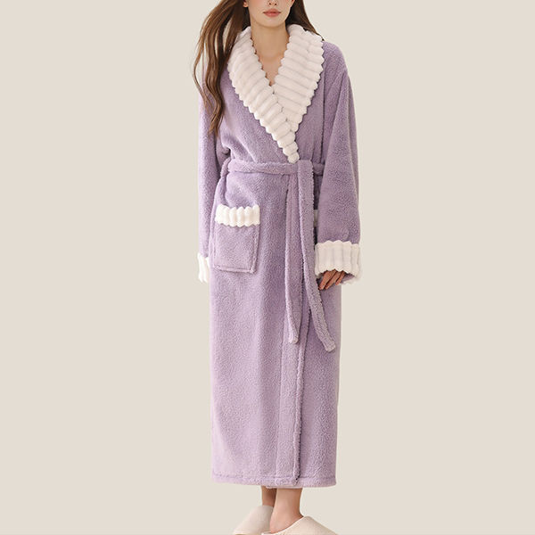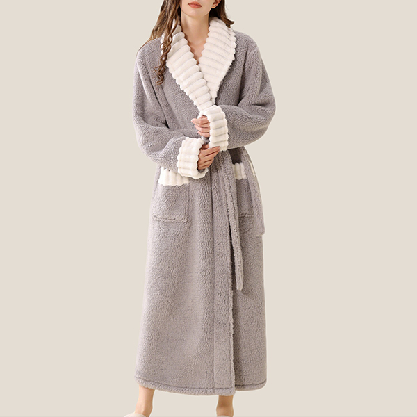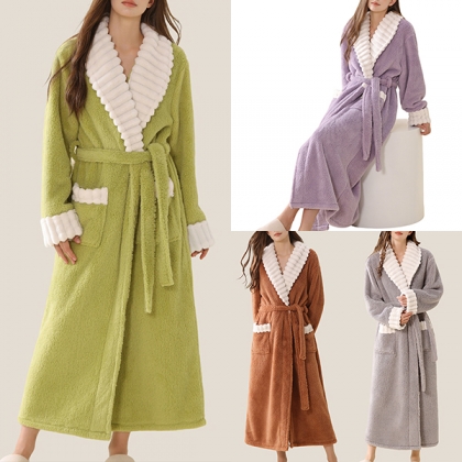 Plush Thick Coral Fleece Bathrobe in Long Style