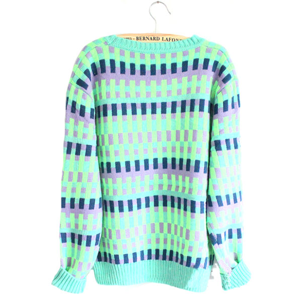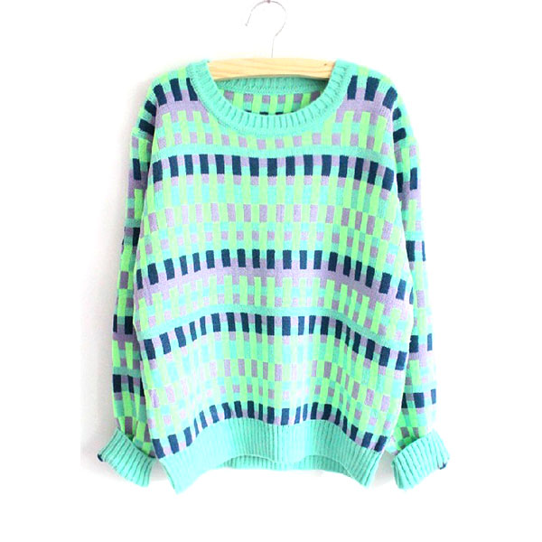 Fashion gals, winter is the best season to show your style. SO, just dress up. This winter, you can choose our pop style sweater to tell the world that you are the most fashionable one. This knit sweater is characterized by the rectangle print which forms the mixing color effect. That looks cool and chic. Like it? Add it to your wardrobe.