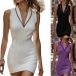 Preppy Collared Mini Dress - Sleeveless Ribbed Bodycon - Summer Tennis Style
