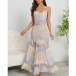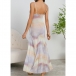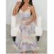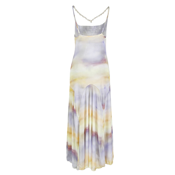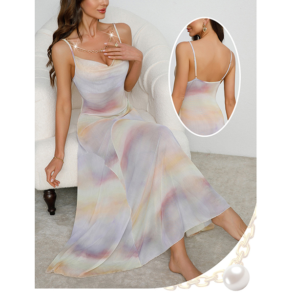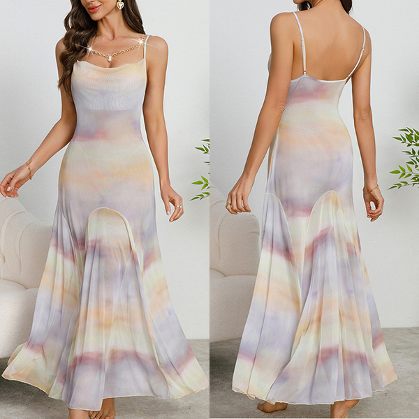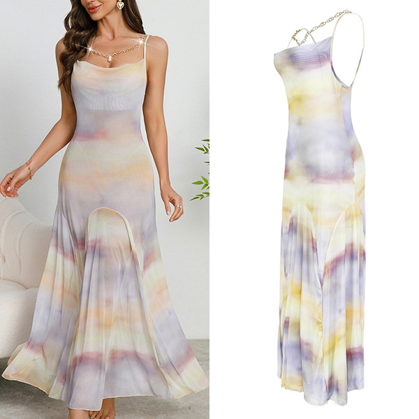 Printed Gradient Maxi Dress with Mesh Collar Insert