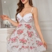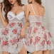 Fashion Lace Spliced Floral Printed Sweetheart Neckline Nightwear Slip Dress