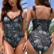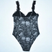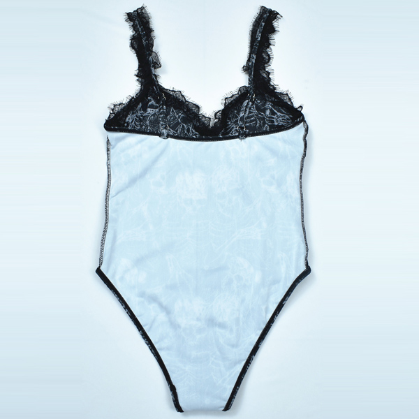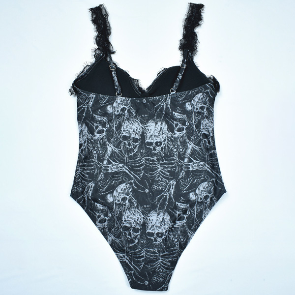 Punk Fashion Skull Printed Lace Spliced Swimming Monokini/One-piece Swimsuit