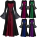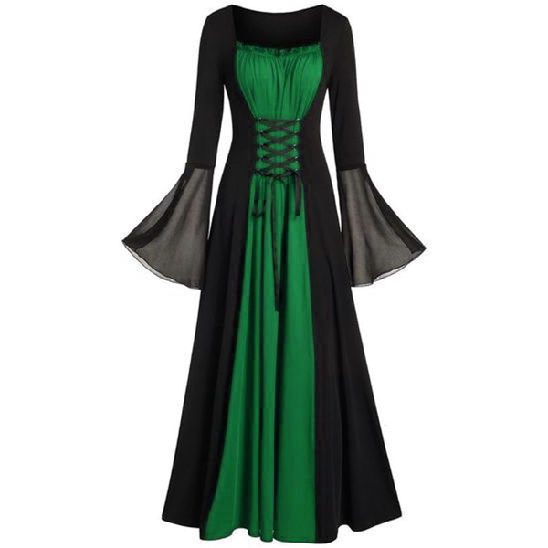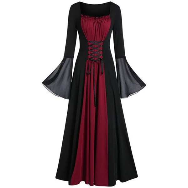 Punk-Inspired Contrast Color Lace-up Trumpt Long Sleeve Maxi Dress for Holloween and Cosplay