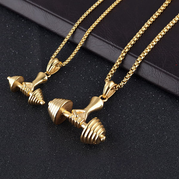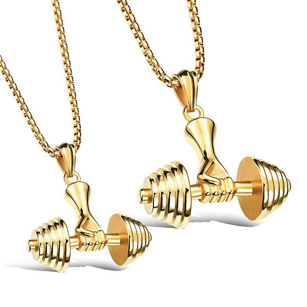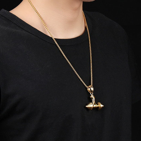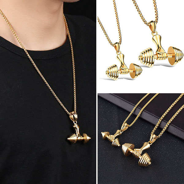 take this necklace for example. This punk style necklace features a classic gold tone,decorated with a barbell pendant,