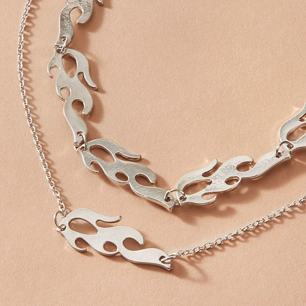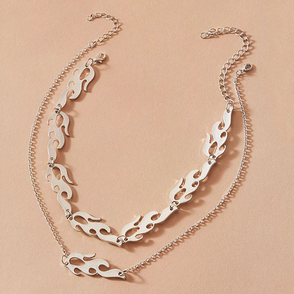 This dual-layer style necklace comes with a classic yet stylish silver tone,decorated with flame pendant,chic yet stylish. It can easily be the highlight of your overall dress up.