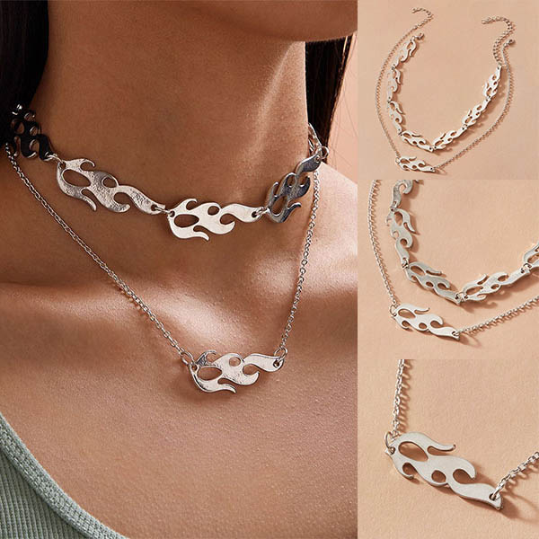 Punk Style Flame Pendant Dual-layer Necklace