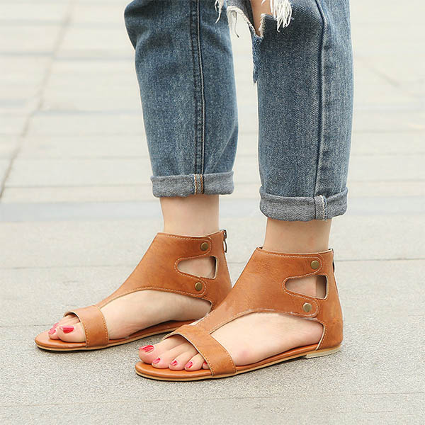 Rock up your punk style with this pair of sandals. Solid color style,outfitted with flat heel,open top