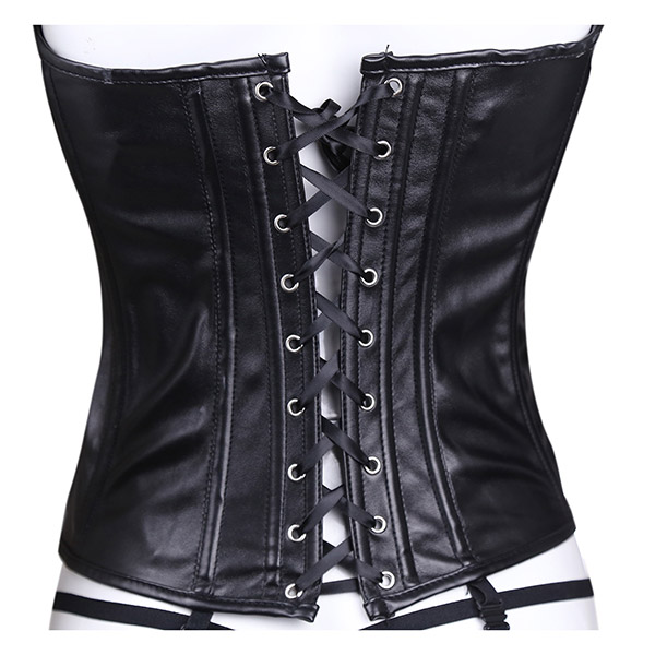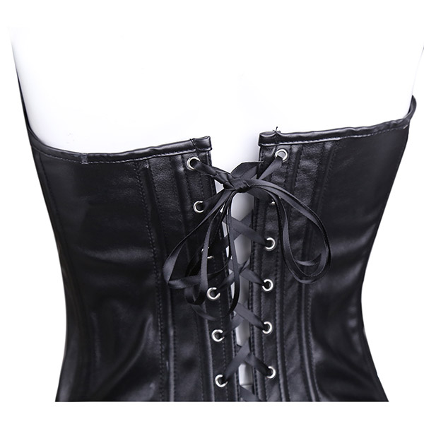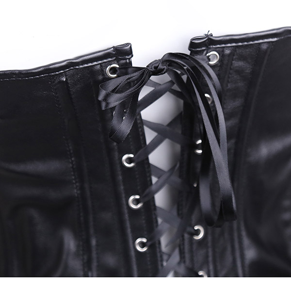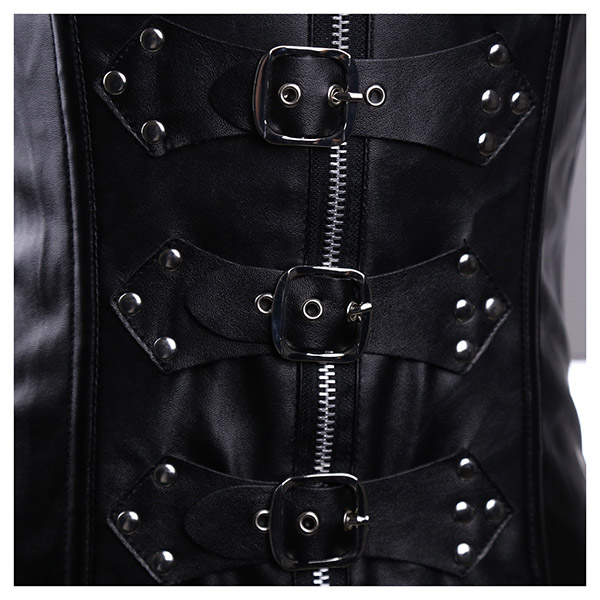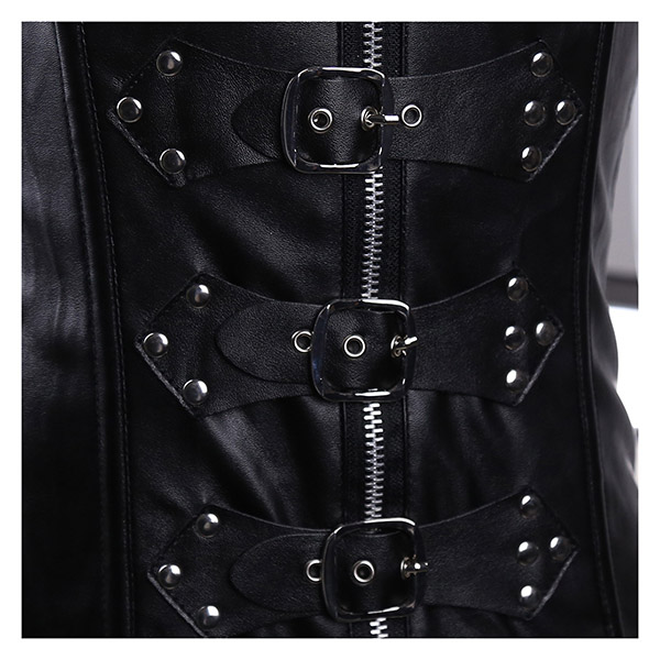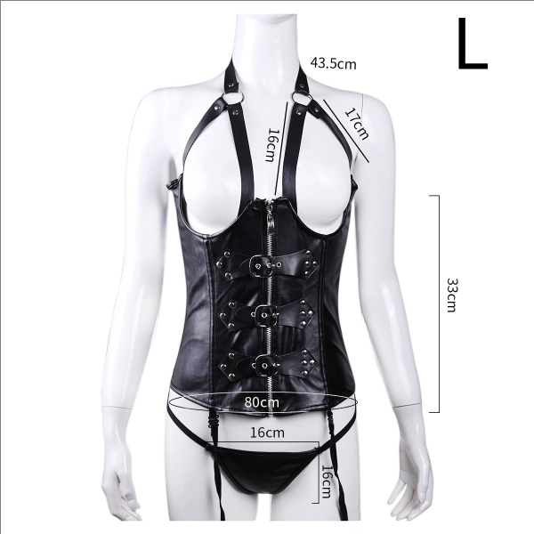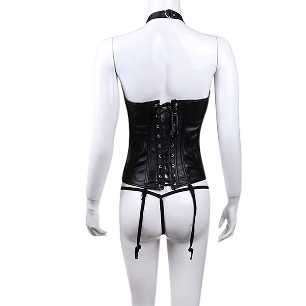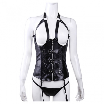 Punk Style Front Cut Out Halter Neck Front Zipper Bucket Artificial Leather PU Shirt for Cosplay