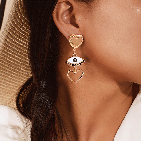 Definitely,this pair of earrings can be the highlight of your overall dress up. It is designed with hollow out heart and eye pendant,chic yet stylish. You can boost your charm with the help of this pair of earrings.