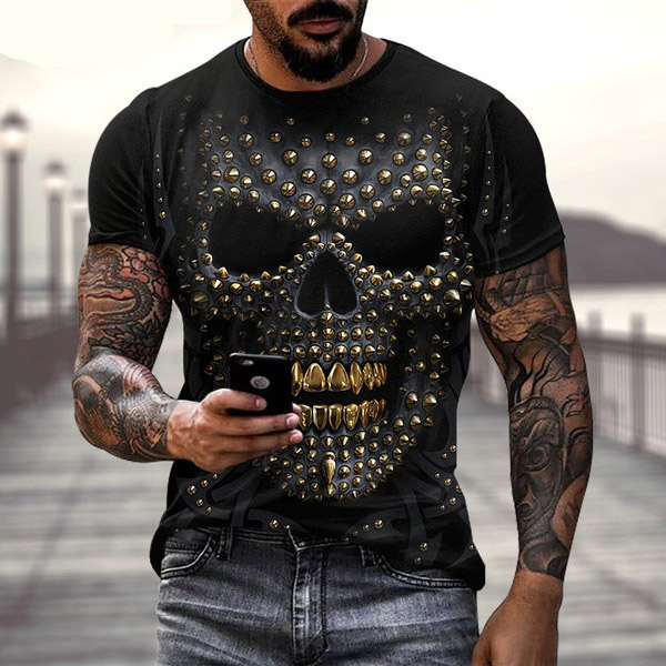 Punk Style Round Neck Short Sleeve Skull Printed Men's Shirt