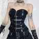 This bold piece features a striking strapless design and front buckle detail adds a unique touch, creating a fitted silhouette that flatters your figure. It is perfect for making a statement at concerts, parties, or nights out.