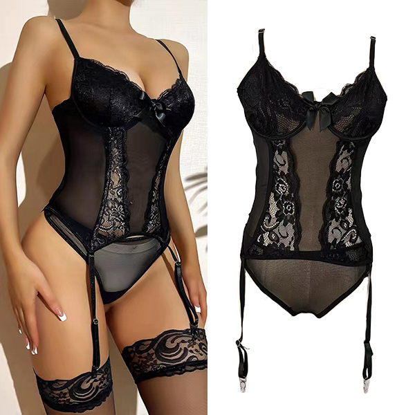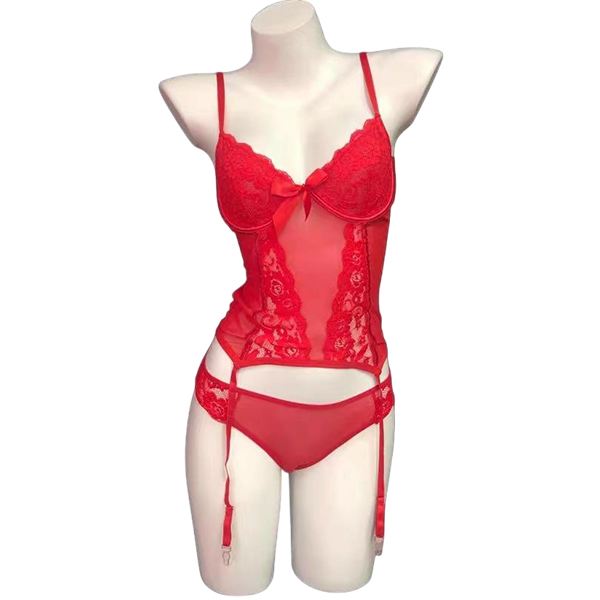 Push-Up Bra with Suspender Stockings Lingerie Set