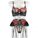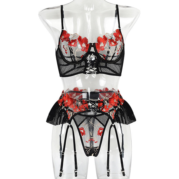 Red and Black Embroidery See-Through Lace Sexy Suit