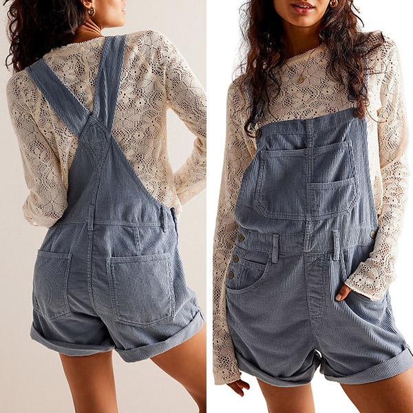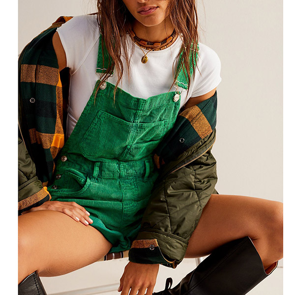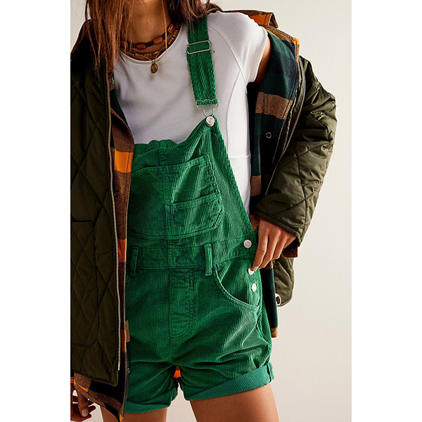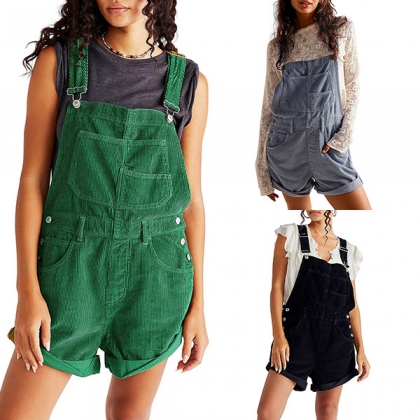 Relaxed Fit Corduroy Overalls - Casual Multi-Pocket Shorts with Bib Front