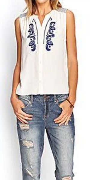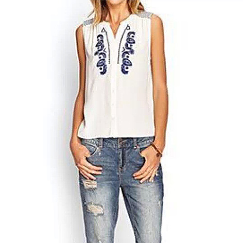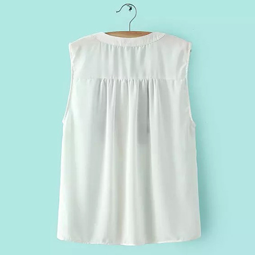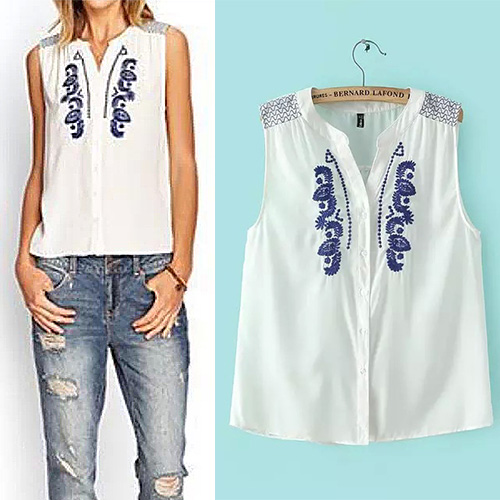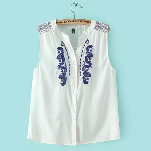 Retro Blue and White Porcelain Embroidery Sleeveless Shirt