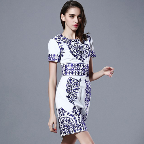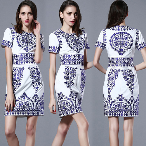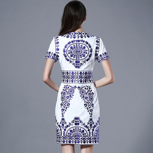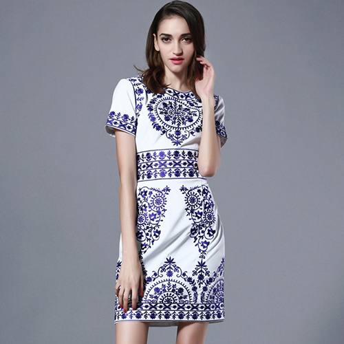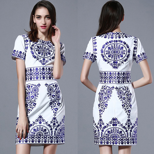 It features retro Blue and White Porcelain printed,with a fit silhouette can perfect show your