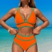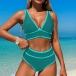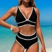 Retro Chic Sporty Two-Piece Swimwear: Contrast Trim Crop Top & Tummy Control Bottoms