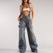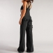 Embrace your fashion-forward side and let this vintage-inspired denim jumpsuit become a statement-making piece in your closet. With its adjustable straps, patch pockets, and straight-leg silhouette, this all-in-one ensemble offers both style and functionality for the modern, sartorially-savvy woman.