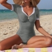 Dive into summer with confidence in this sophisticated one-piece swimsuit. Perfectly blending sporty chic with vintage glamour, this suit features crisp white contrast trim. The thoughtful design focuses on enhancing your natural silhouette, making it an essential addition to your resort wear collection.