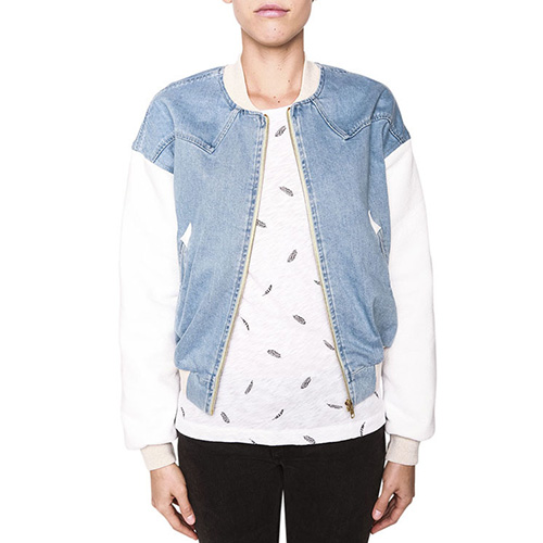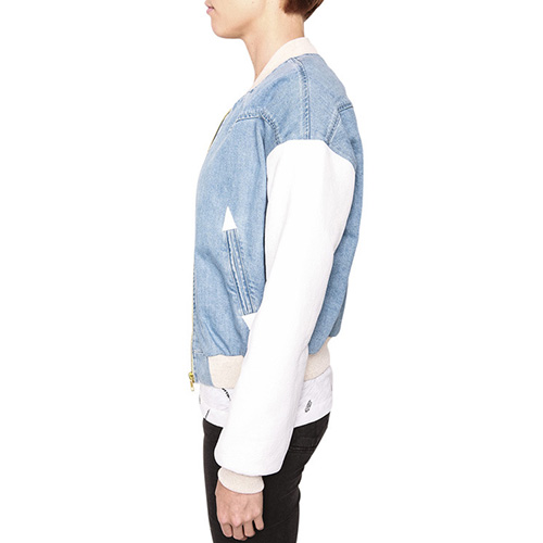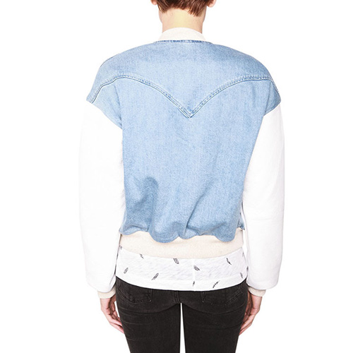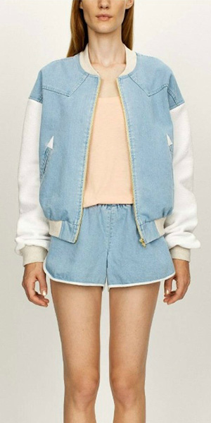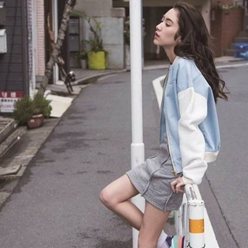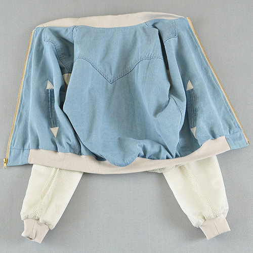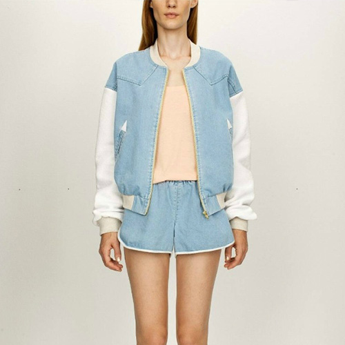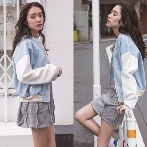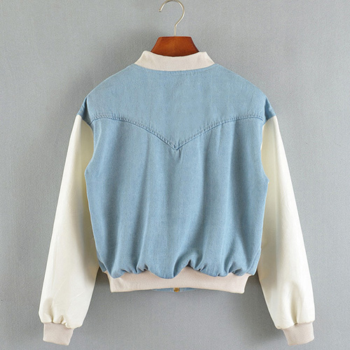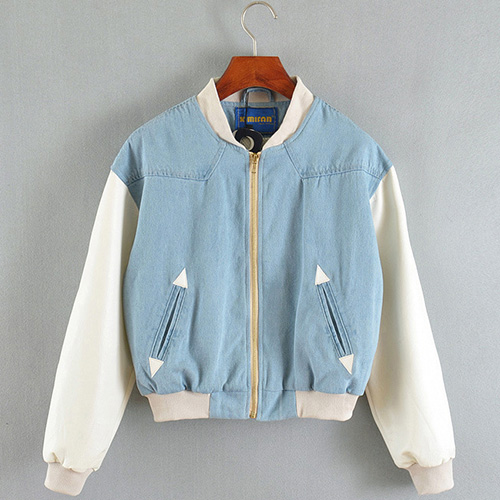 Wanna a chic and stylish look? Then how could you miss this jacket? It features denim spliced style,