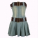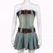 Retro Distressed Tube Top Mini Dress with Large Belt Slim Denim Skirt