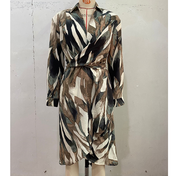 Retro Dress featuring Oil Painting Print with Defined Waist