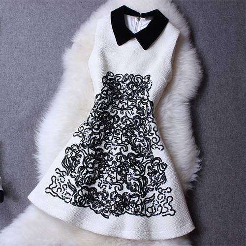 This dress is combination of retro and elegant elements. It features exquisite embroidery,sleeveless,POLO collar and gathered waist design. Backside zipper closure. Show your elegant temperament and slender figure in this dress.