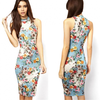 This Cheongsam dress features retro floral print pattern with high collar design.Sleeveless and high waistline perfectly show your slender waist and charming curve.