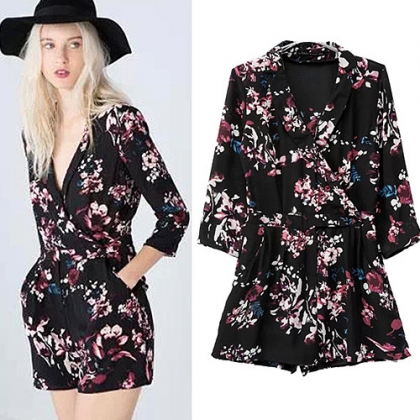 Characterized by retro floral print pattern,with v-neck and high waist design,can perfect show your charming sense.