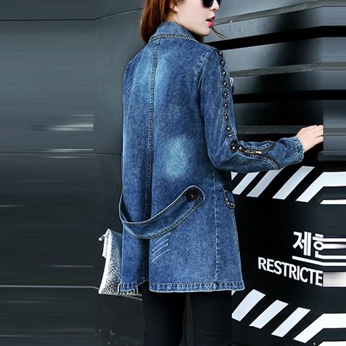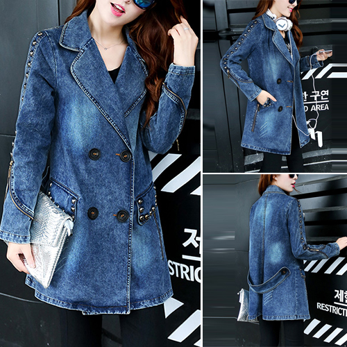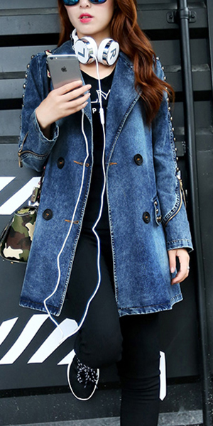 Completed with notched lapel,double-breasted and rivets for decoration.