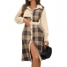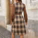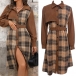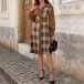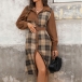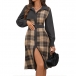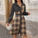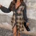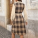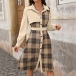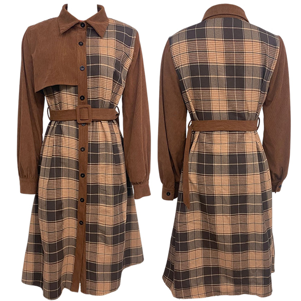 This Plaid Shirt Dress with Belt is a stylish and retro-inspired piece that combines classic elements with modern trends. The corduroy fabric adds a vintage touch to the dress, offering a textured and cozy feel that is perfect for the cooler seasons. The spliced plaid design adds a playful and eclectic element to the dress, creating a unique and eye-catching look.This dress can be styled in various ways to create different looks.
