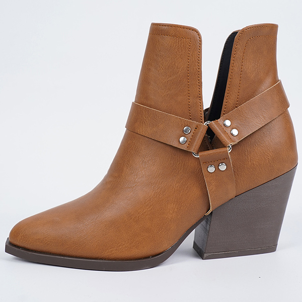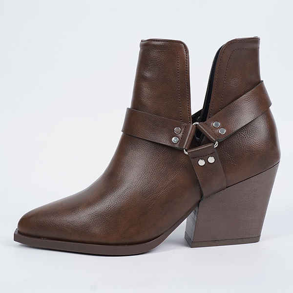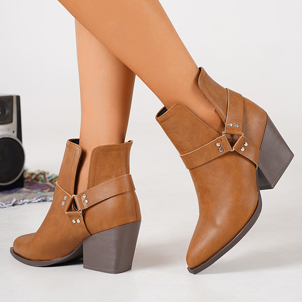 Retro Short Boots with Side Buckle Decoration, Comfortable Thick Heel, and Pointed Toe