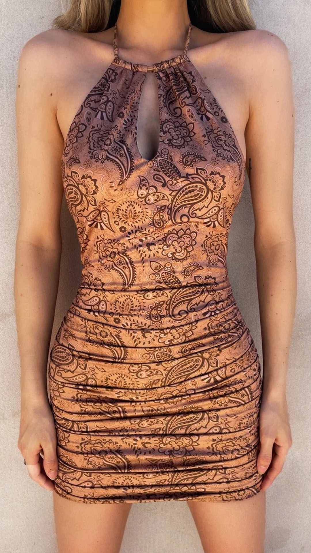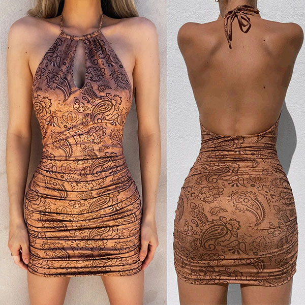 When you have no idea about what to wear for your cocktail parties or weekend gatherings,then you can just make your eyes focused on this dress. Halter style,with backless and off-shoulder design,this piece is sure to offer you a more alluring and stunning look. And the chic printed details can lend you a dash of retro vibes. Dress it up with your sexy heels and you can easily stand out in the crowd!