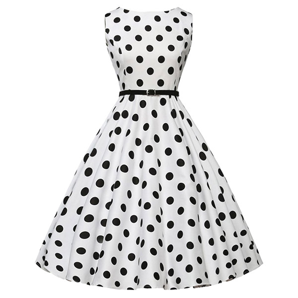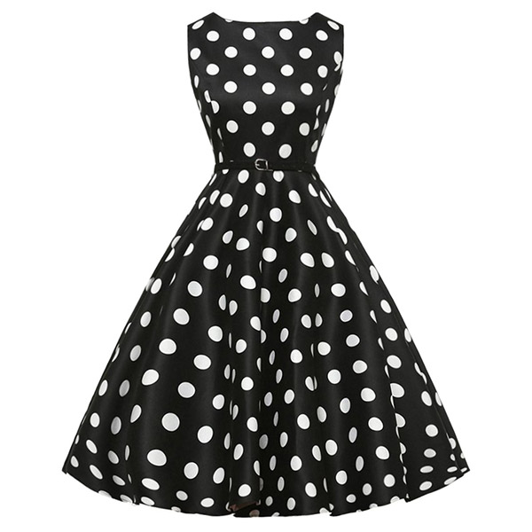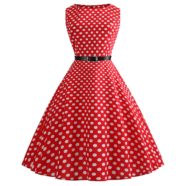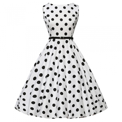 Retro Style Cap Sleeve Round Neck High Waist Dots/Plaid Printed Dress