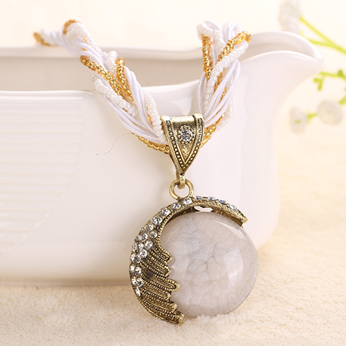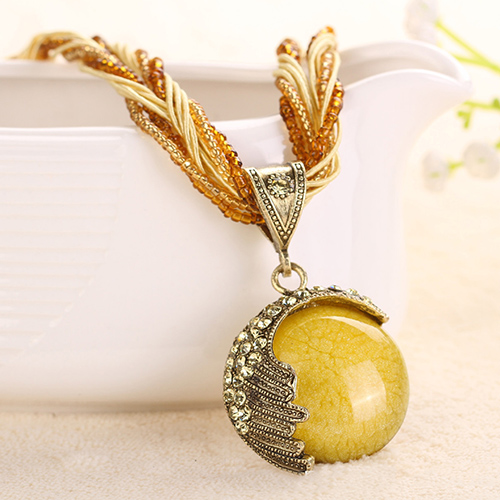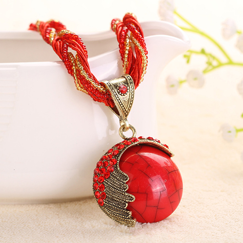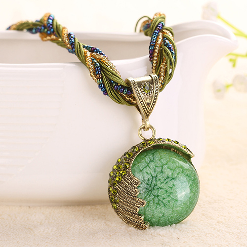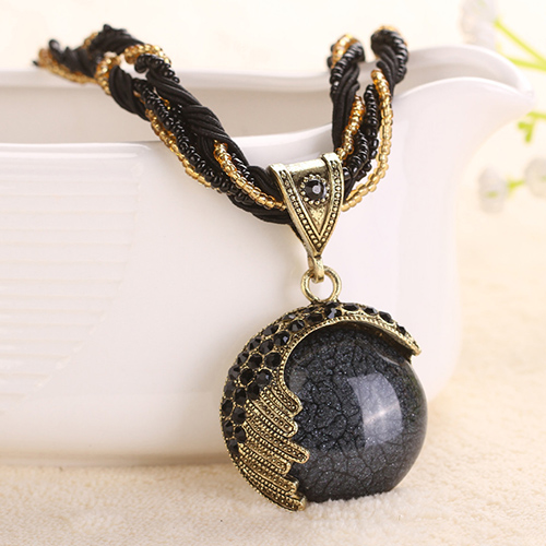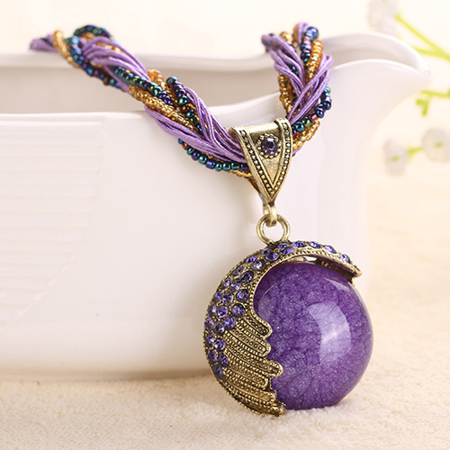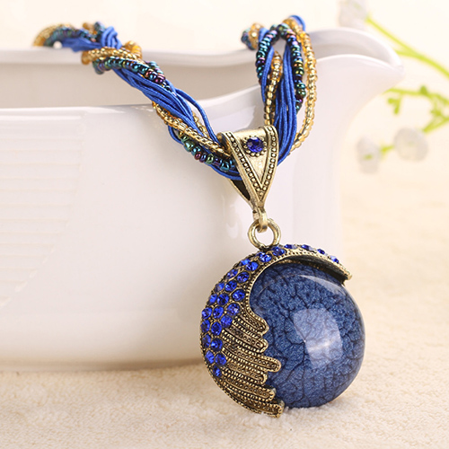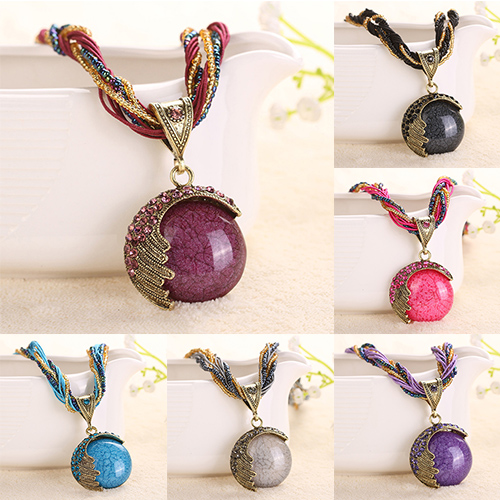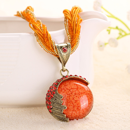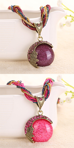 Retro Style Carving Crystal Ball Pendant Colorful Necklace