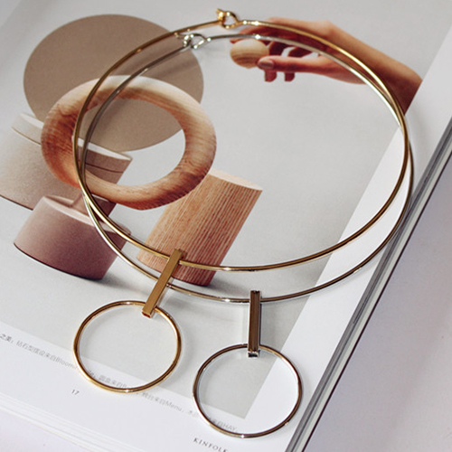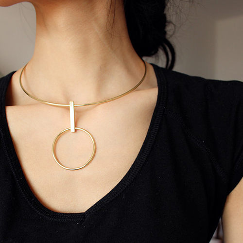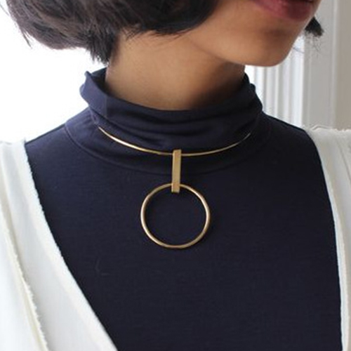 Retro Style Gold/Silver-tone Circle Pendant Alloy Choker Necklace